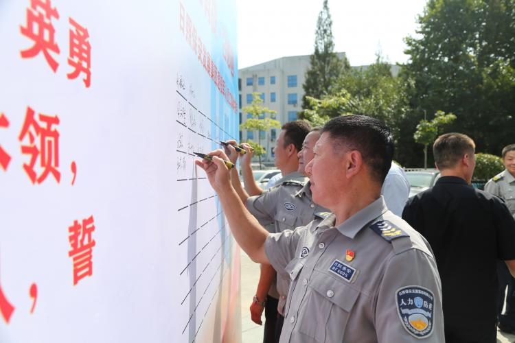 宣誓完成后,尹相光同志代表集团党委发表讲话,他对广大退役军人员工在日照保安事业发展中做出的积极贡献给予充分肯定,并对退役军人员工立足保安岗位建功立业提出希望和要求:一是坚定政治立场,锤炼政治品格,坚定不移听党话、跟党走,进一步增强荣誉感、责任感、使命感,做集团转型升级和创新发展排头兵;二是传承发扬中国军人不畏强敌、敢于亮剑、坚决战斗的优良作风,在集团改革发展不断深化的进程中,保持军人的优秀本色,以自己的模范行动影响引导身边职工群众;三是勤奋学习,增强本领,在实践中求得真知,掌握本岗位工作所需的过硬本领,将军人的优秀品质和优良作风转化为促进企业创新发展的积极因素,续写军营外建功立业的新篇章。